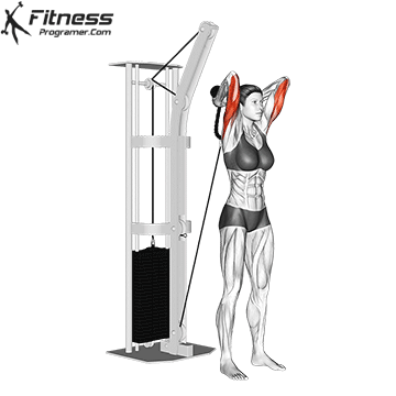 - 케이블 오버헤드 익스텐션: 케이블을 머리 위에서 잡고, 팔을 머리 뒤로 내렸다가 펴는 동작입니다. 삼두 장두를 깊게 늘려주며, 허리가 과하게 젖혀지지 않게 복부에 힘을 주는 것이 중요합니다.